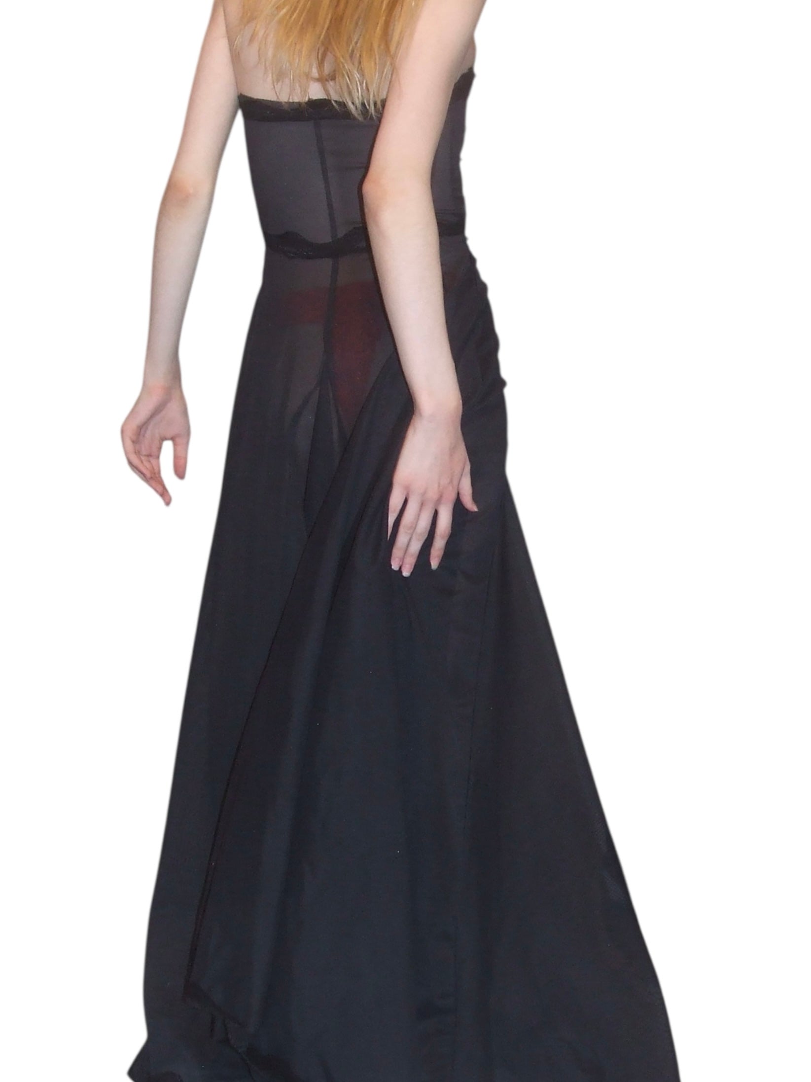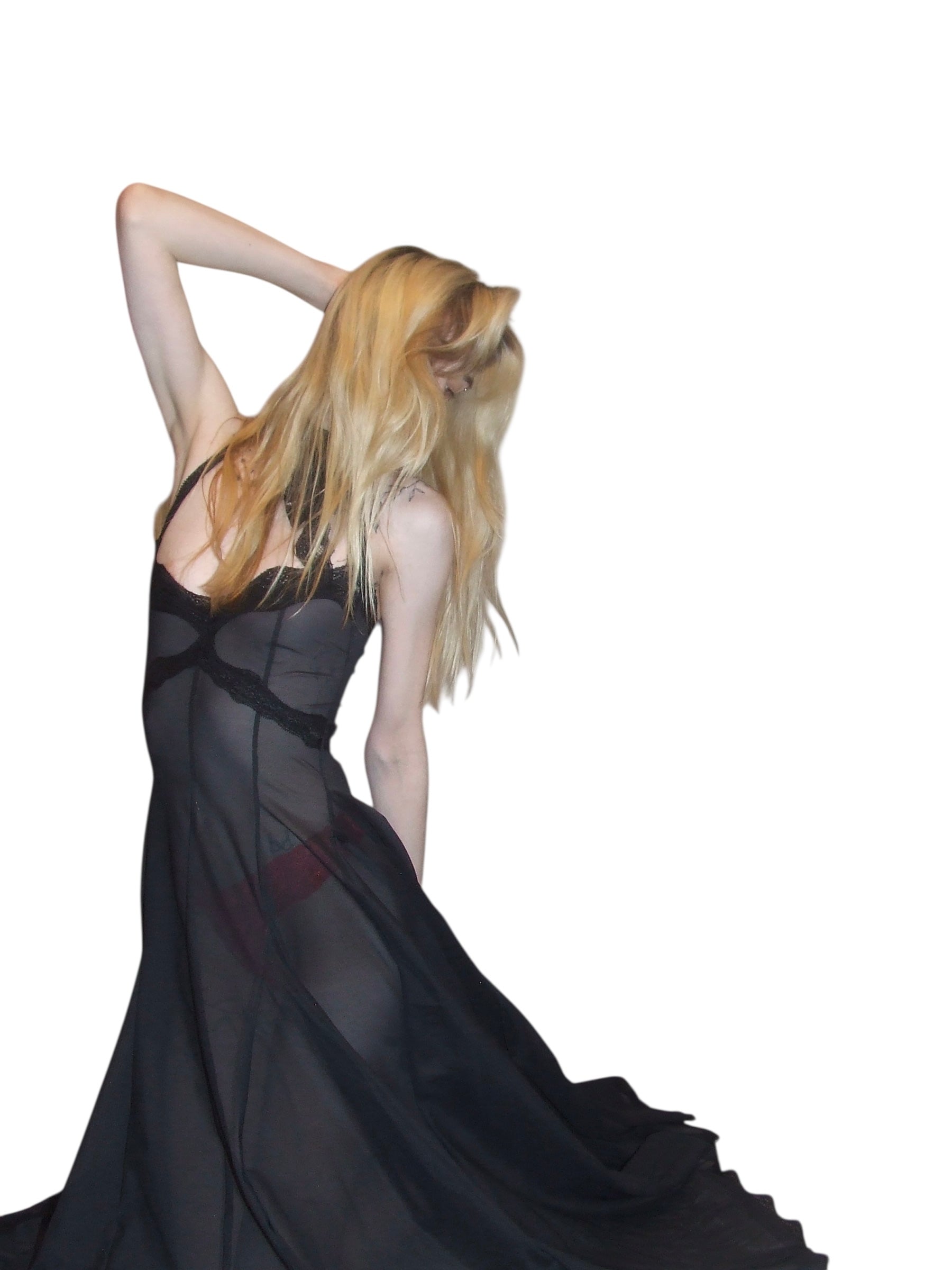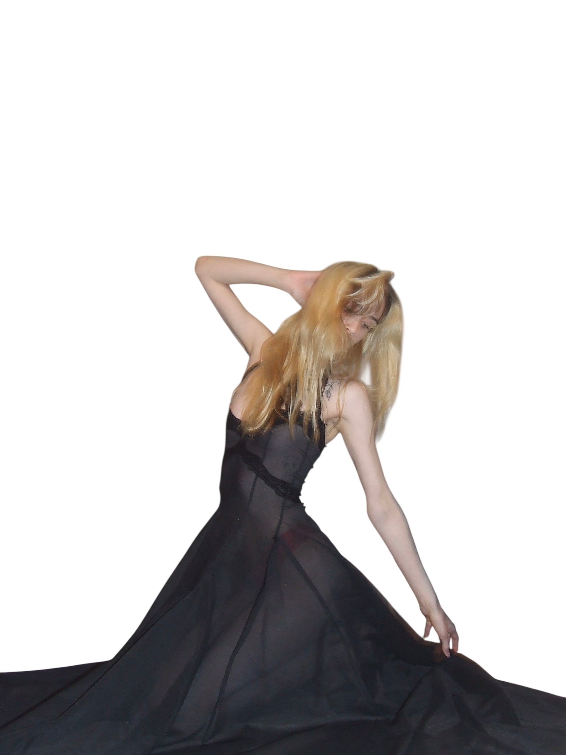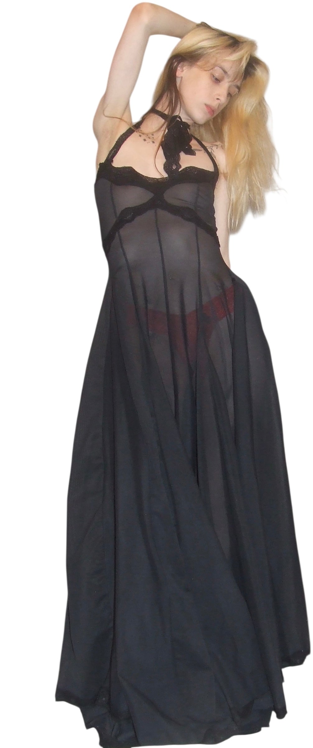 handmade to order semi sheer a-line dress made with deadstock power mesh and vintage nylon lace