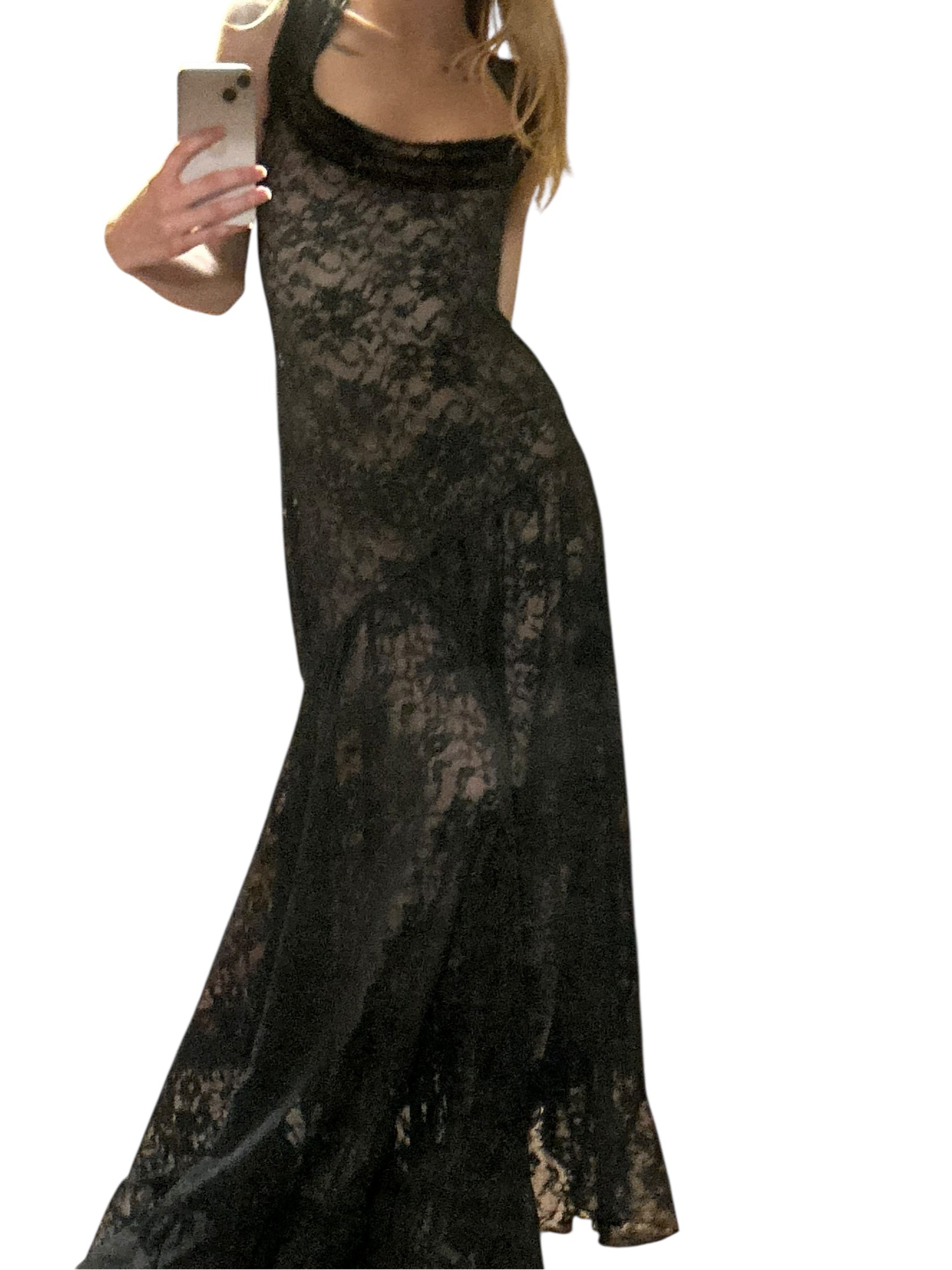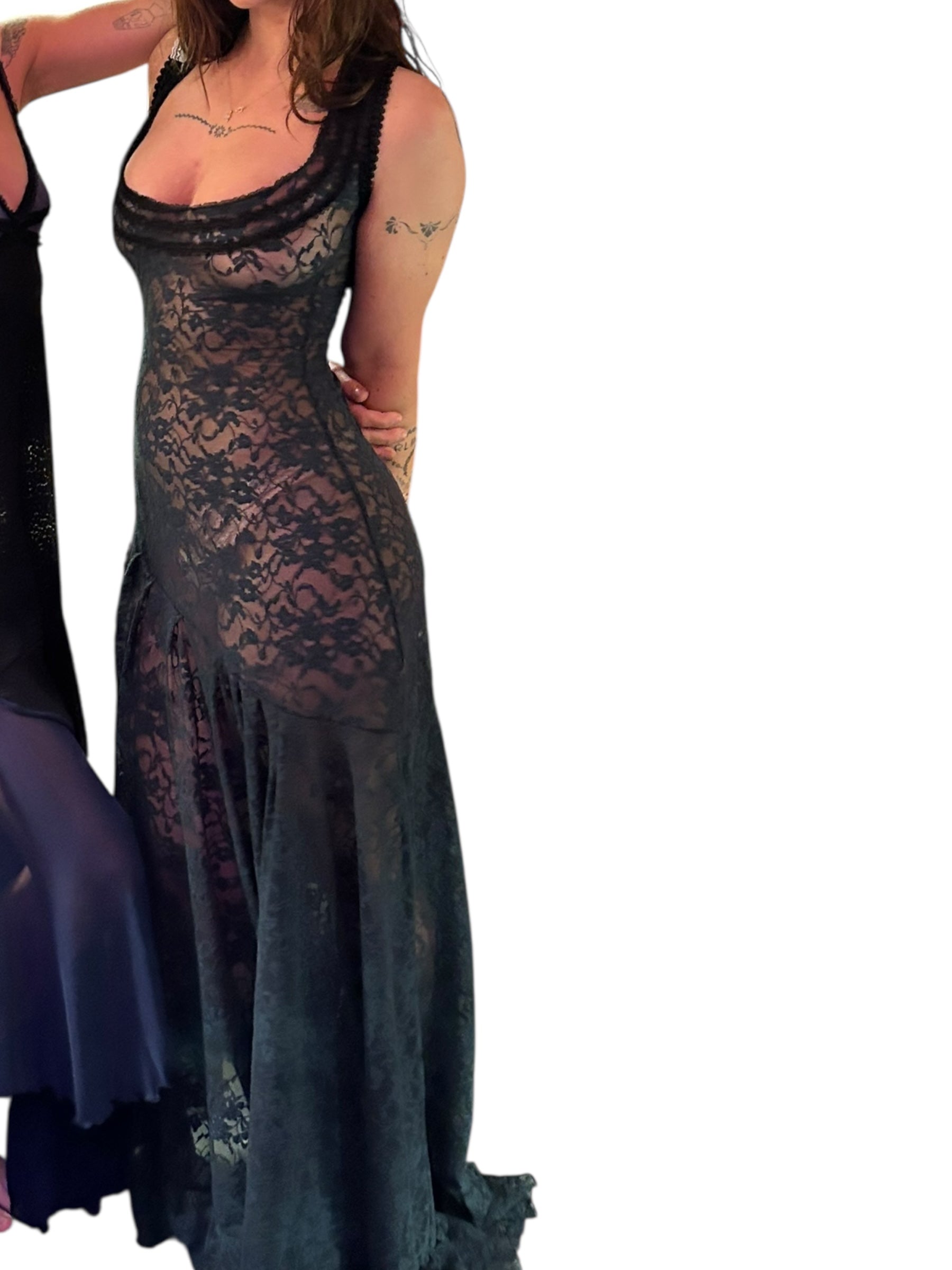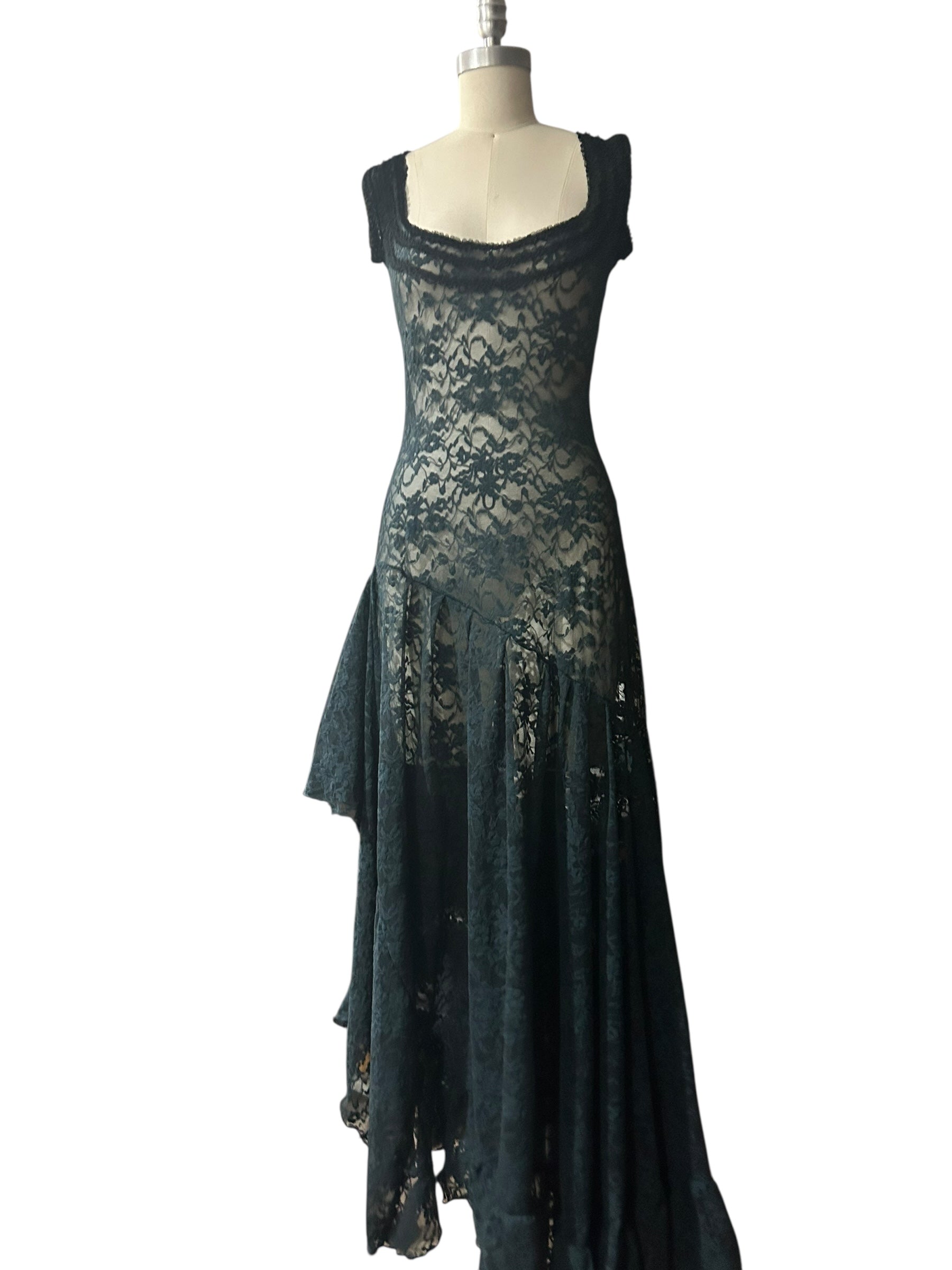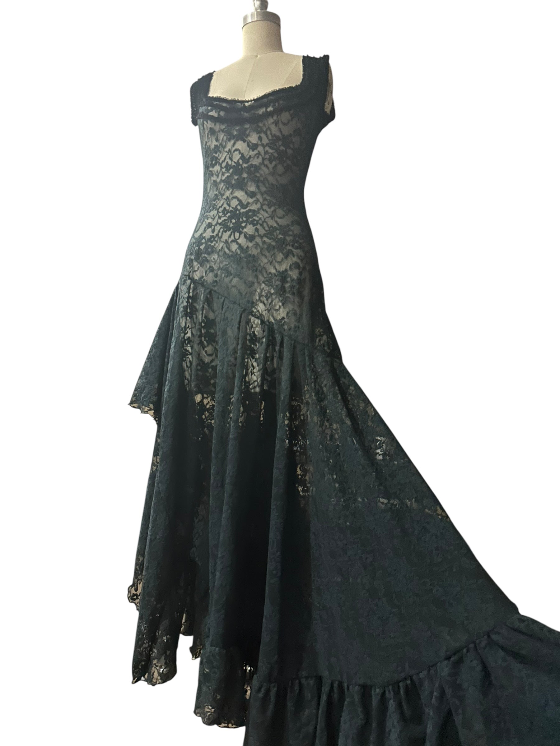 one of a kind handmade lace slip with full flounce and ruffle skirt with vintage lace trim