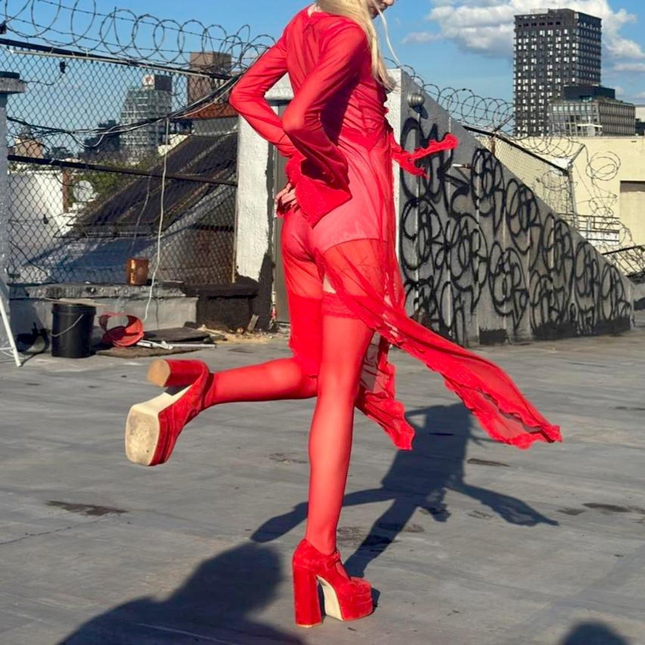 Hand Made to order mesh and lace lounge wear robe. Featuring an empire bust line, flared sleeves, and a matching lace trim slit in the back. Ships 1-4 weeks after purchase depending on current order volume.